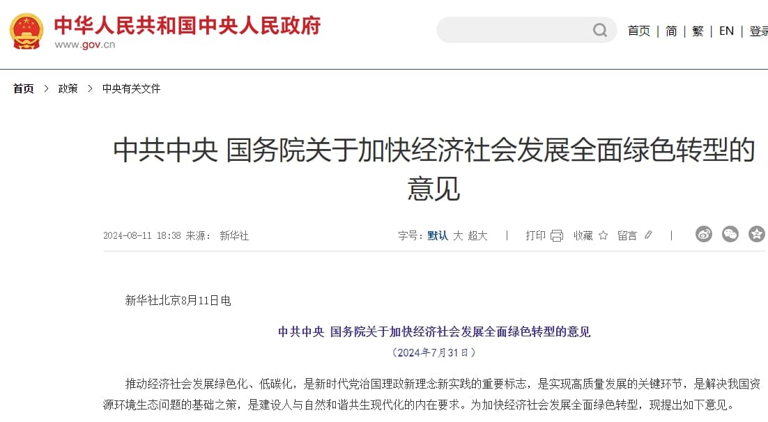 前不久,國務院印發了《關于加快經濟社會發展全面綠色轉型的意見》(以下簡稱《意見》)。這是中央層面首次對加快經濟社會發展全面綠色轉型進行系統部署。